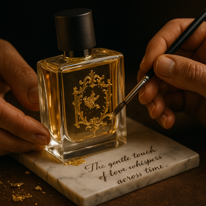 In the world of Kleio Paris, the vessel that holds our fragrances is as much a work of art as the scents themselves. Crafted with the elegance and strength of brick marble, each bottle is a testament to timeless beauty and enduring luxury. Shaped from the finest crystal, polished to perfection, our bottles gleam with the light of a thousand stories, inviting touch, sight, and eventually, scent, to converge in a moment of pure enchantment. The enchantment deepens with an intricate layer of actual gold artwork adorning the back of each bottle, achieved through an exquisite heat fusion technique. This design mirrors the natural, wavy patterns of marble, creating a stunning visual symphony that complements the liquid poetry it encases. Inside, the fragrances speak of unparalleled quality, each scent meticulously curated from the best ingredients the world has to offer. At Kleio Paris, we believe that true luxury lies in the details, where the marriage of form and essence creates not just a perfume, but a treasure; a beacon of craftsmanship and artistry that whispers tales of history, beauty, and the relentless pursuit of perfection.